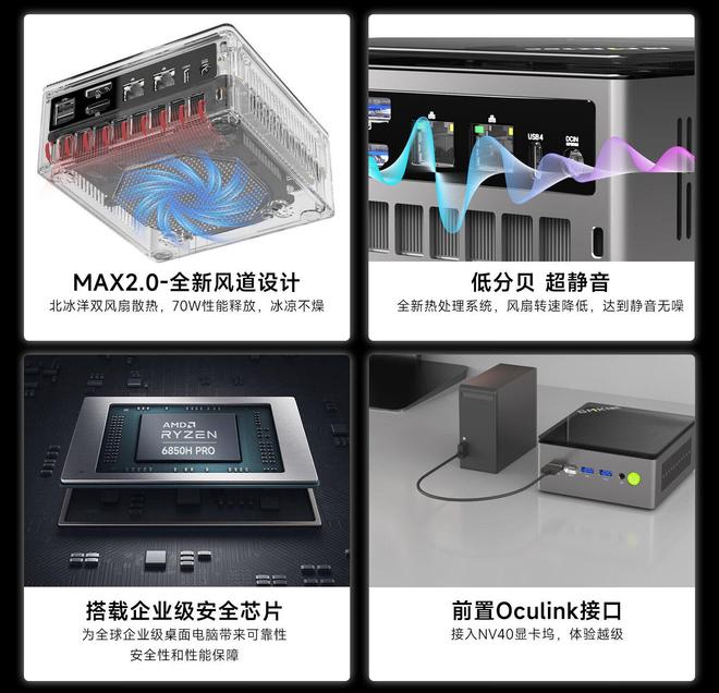 据悉 GMK M7 拥有 Oculink 接口,可以轻松连接外置显卡◆■★、存储设备、网络设备等。得益于Oculink 直连PCIe通道,在外接显卡时可以做到性能接近无损,相比雷电接口更具有优势。